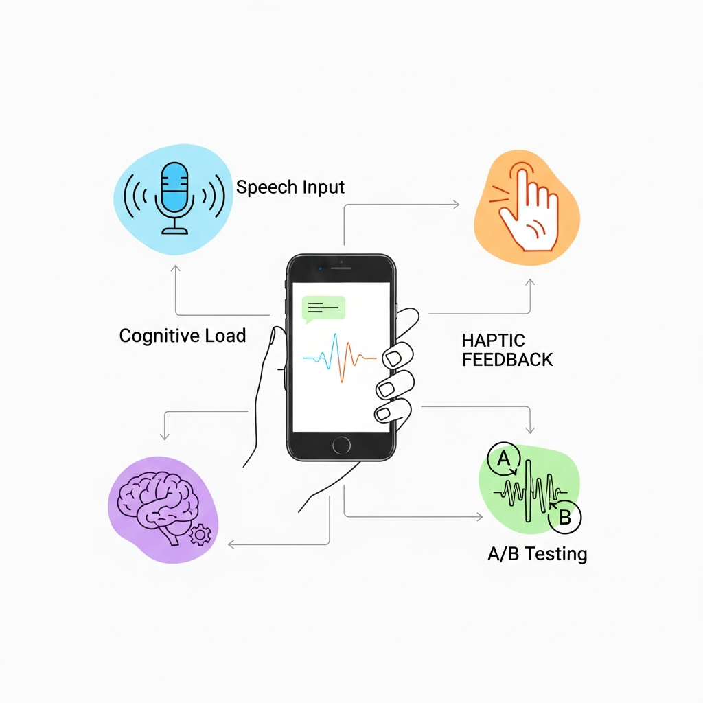 In contrast, our approach leverages the built-in haptic engine of standard smartphones (iPhone 8 and above) to deliver real-time vibrotactile cues mapped to prosodic features without requiring extra hardware. Data for evaluation is collected through app-based interventions with beginner-to-intermediate English learners using randomized control and experimental groups. Speech samples are assessed with objective metrics: Goodness of Pronunciation (GoP), Lexical Stress Ratio (LSR), and F0 Root-Mean-Square Error, alongside subjective ratings from native speakers on a Likert scale. NASA-TLX scores and user feedback further quantify cognitive load and engagement. Preliminary results show marked improvements in pronunciation, accuracy, and participant experience, establishing the significance of accessible haptic feedback in mobile language learning.