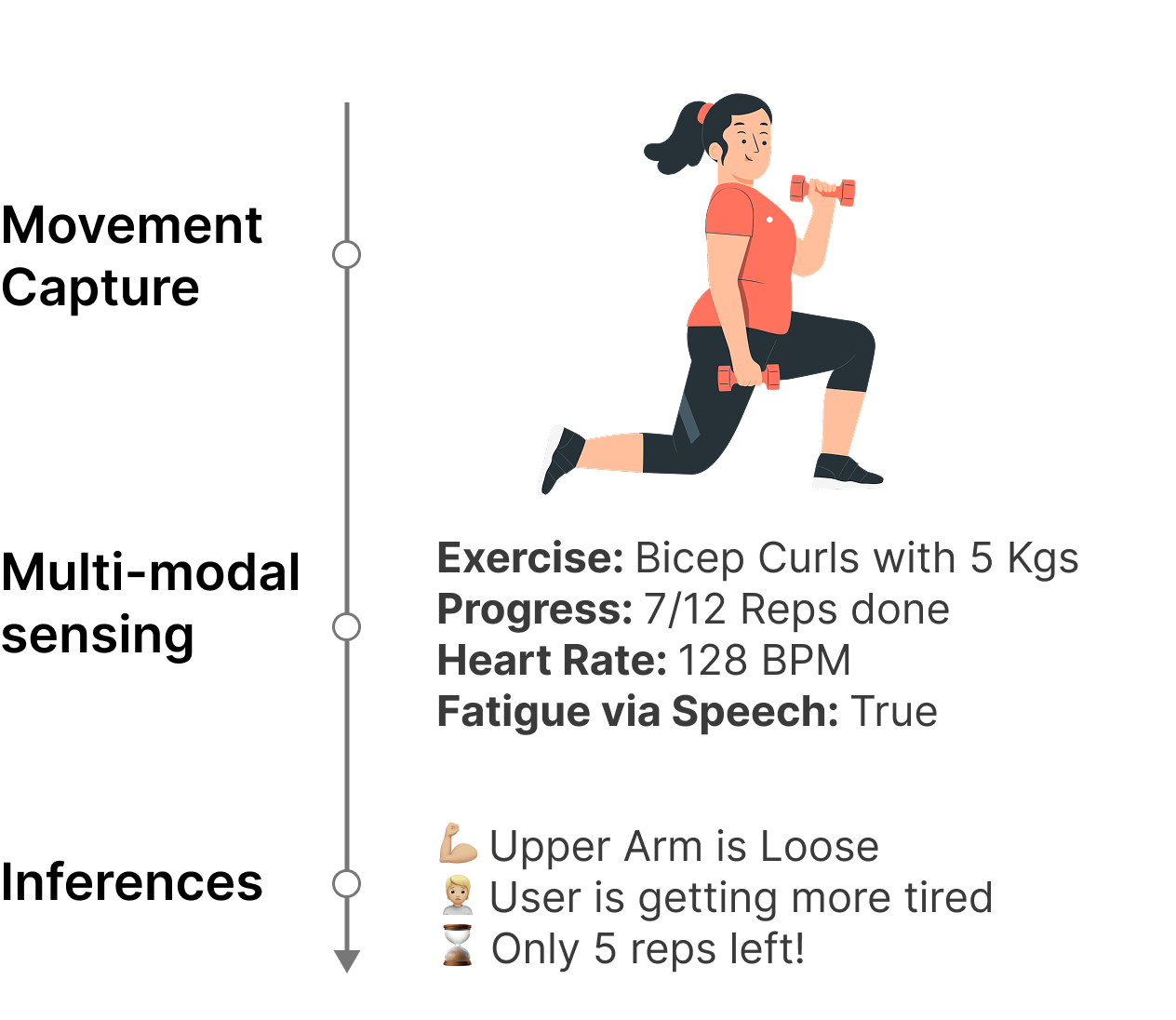 Maintaining fitness consistency is challenging due to the high cost of personal trainers and the static nature of existing applications, often resulting in unused memberships and injury risks. To address this gap, we present Dumbl, a market-ready solution built upon our research system FlexAI. This real-time, multi-modal adaptive framework integrates computer vision, bio-sensing, and Large Language Models (LLMs) to provide instant, personalized interventions. Informed by a formative study of 90 participants, our methodology employs MediaPipe for pose estimation, a fine-tuned ResNet-18 model for pain classification (achieving 79.3% accuracy), and audio analysis for fatigue detection. An integrated LLM synthesizes these physiological inputs to generate context-aware, tone-adaptive feedback. A comparative user study with 20 participants revealed that the system significantly reduced negative emotional states, with users reporting lower exhaustion (p=0.0103) and discouragement (p=0.036) compared to a control group. Additionally, participants experienced significantly less boredom (p=0.0258) and higher enjoyment, demonstrating the system's ability to effectively simulate expert human coaching through dynamic physiological adaptation.