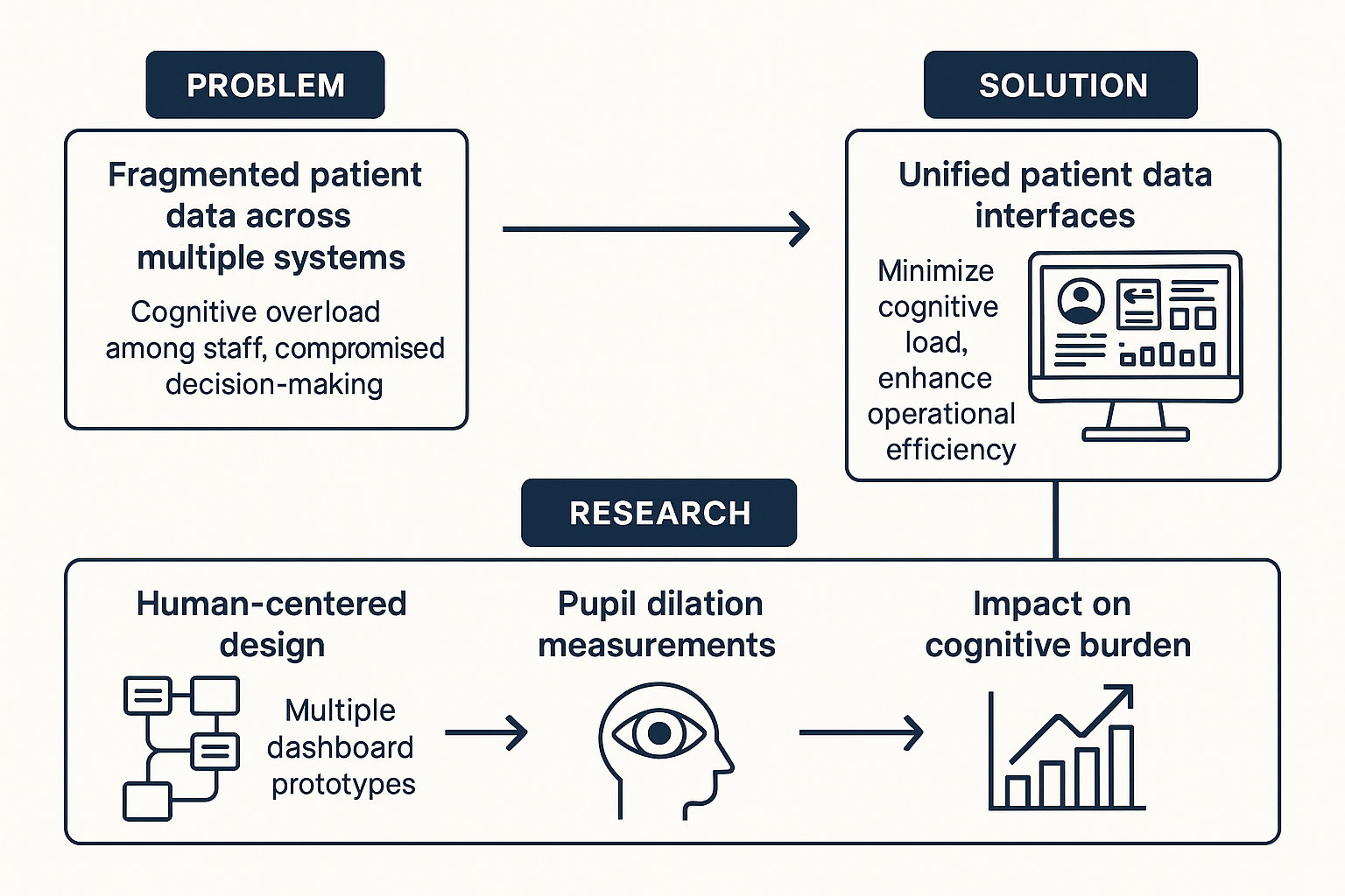 Healthcare organizations face significant challenges due to fragmented patient data across disparate systems, leading to high staff cognitive overload and compromised decision-making. This project addressed these Human-Technology Interaction (HTI) issues by developing and evaluating a Unified Customer Data Platform (CDP) interface against an existing two-dashboard system. Our evaluation leveraged objective physiological metrics (pupil dilation, fixations) and subjective assessments (NASA-TLX).